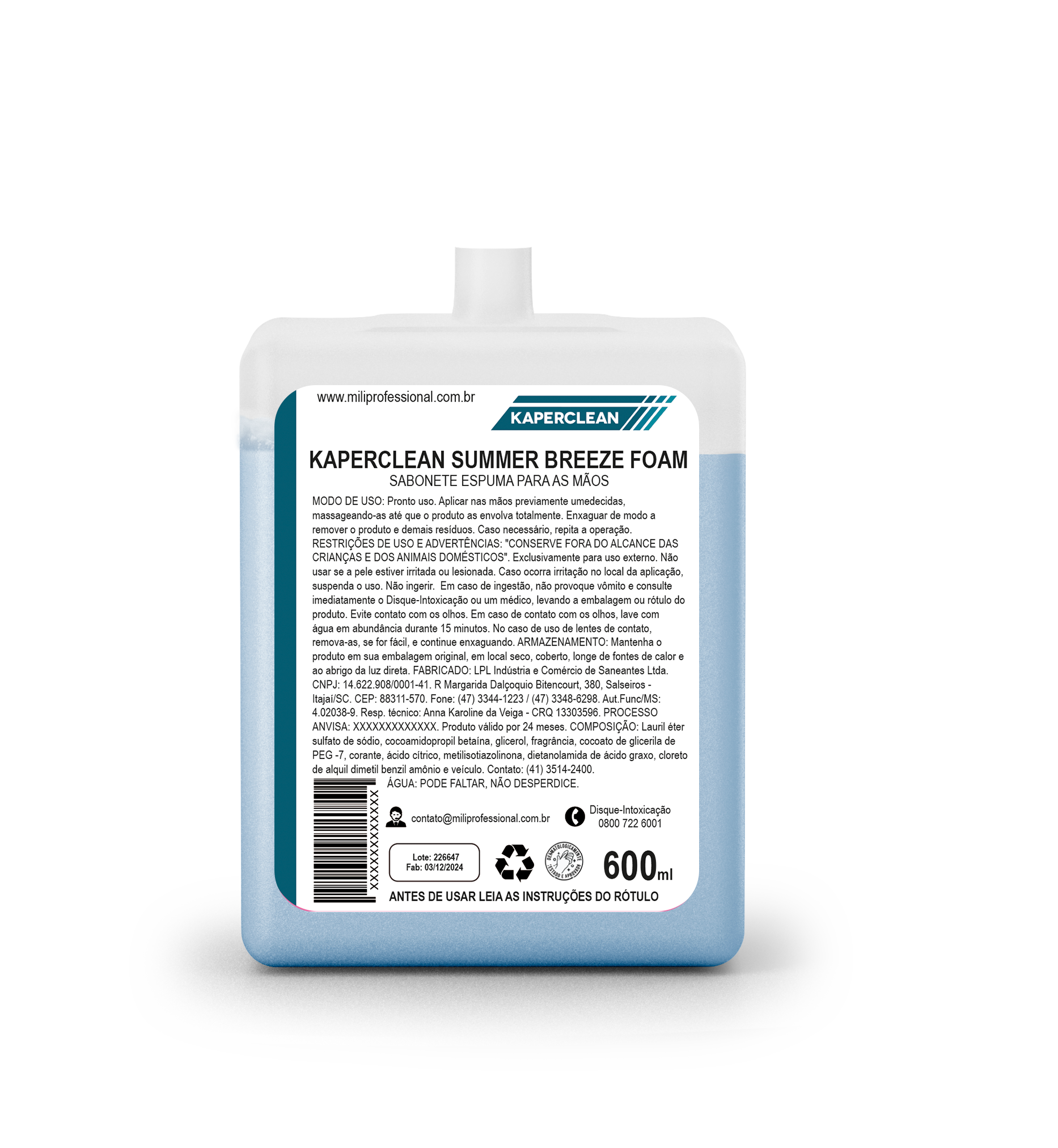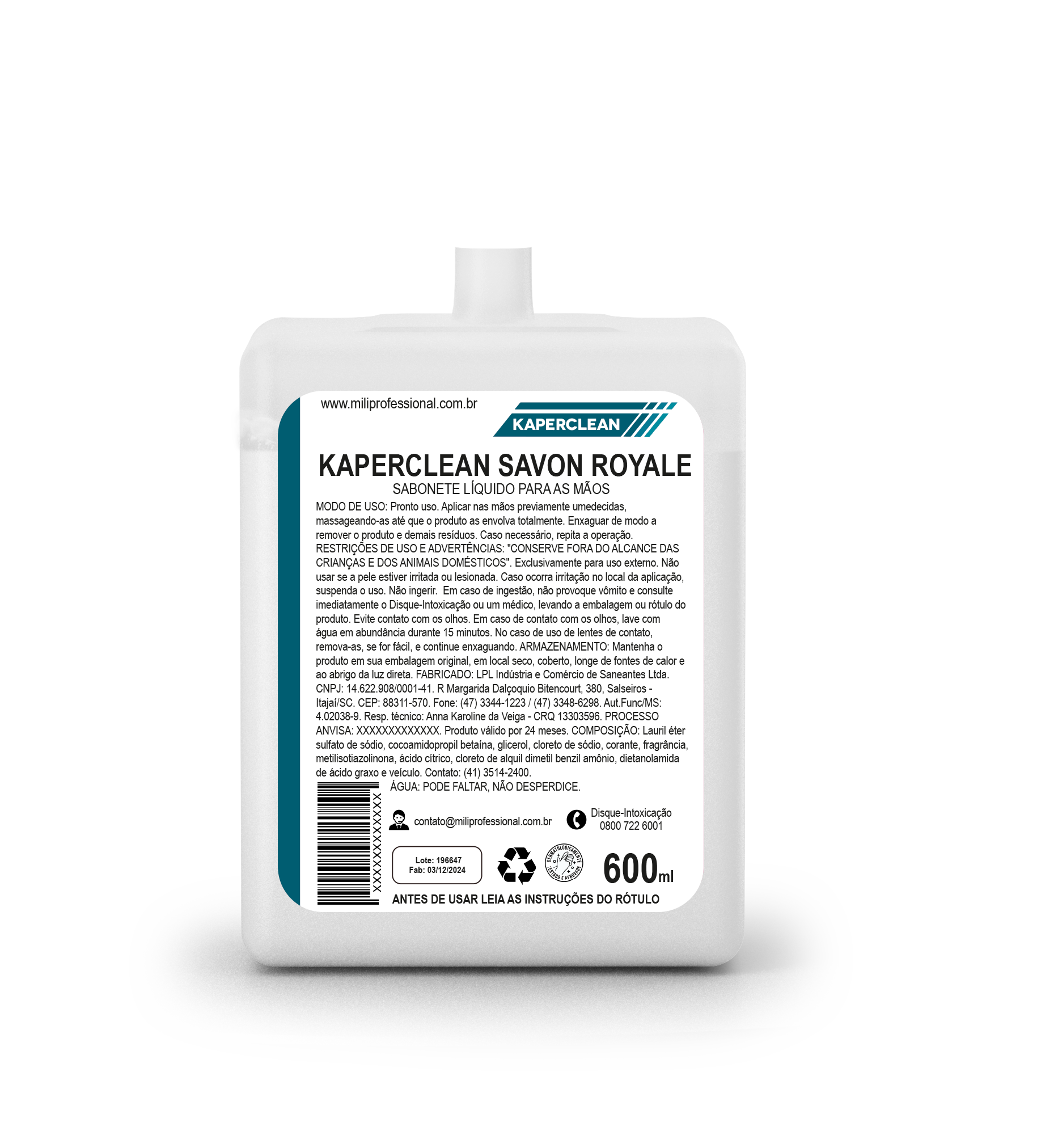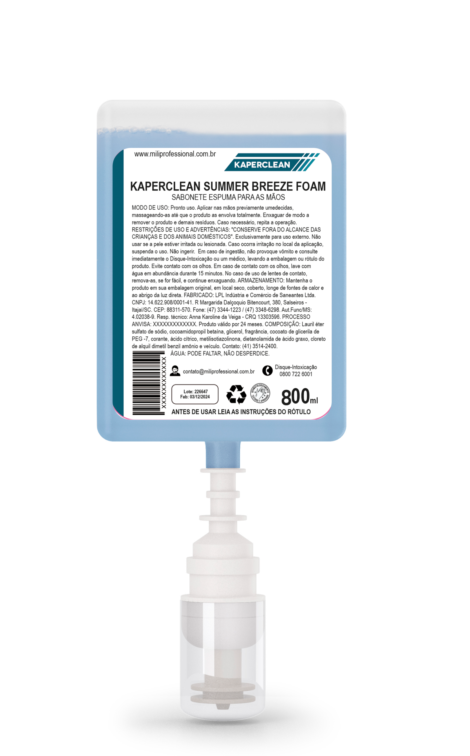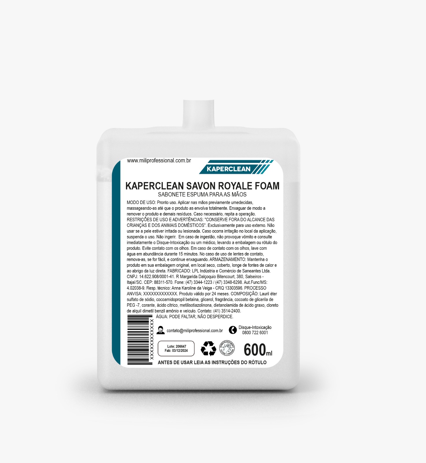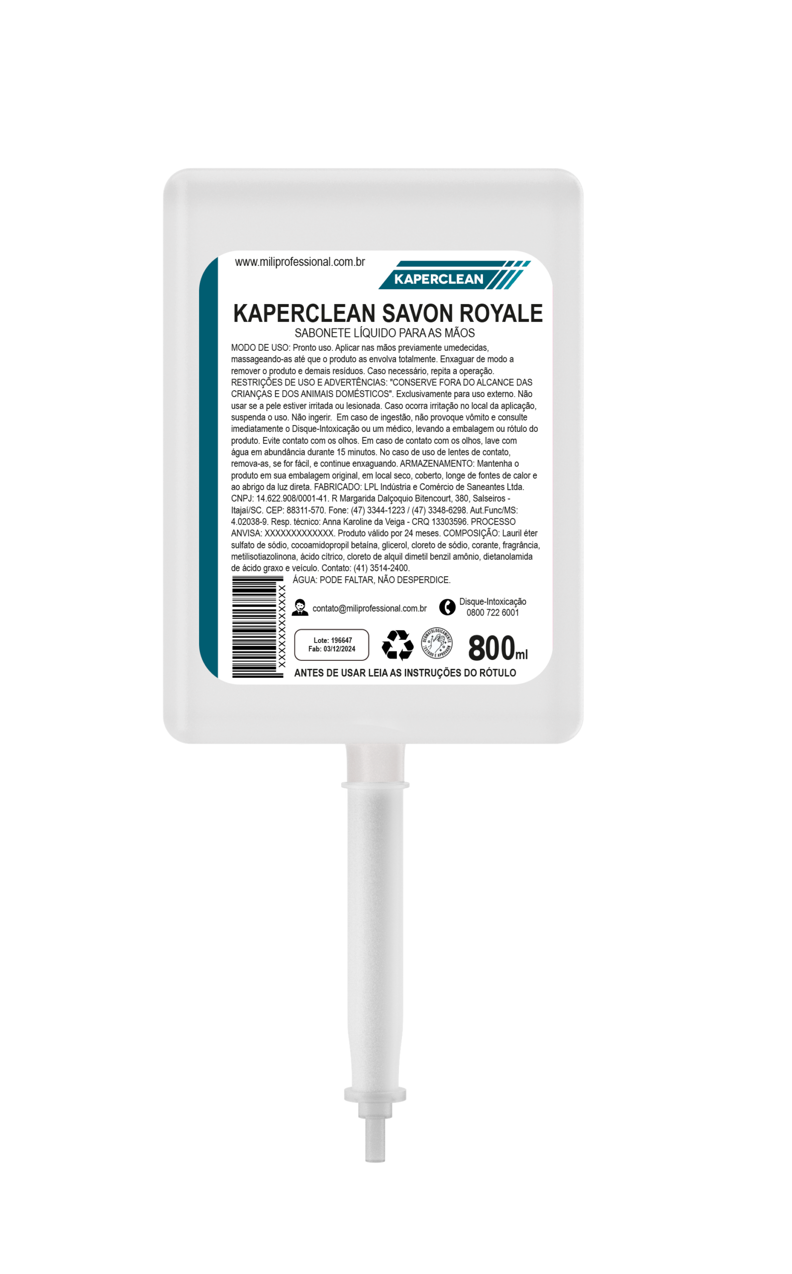 sanitárias. Embalagens seguras, econômicas e compatíveis com os dispensers fornecidos pela Mili Professional.