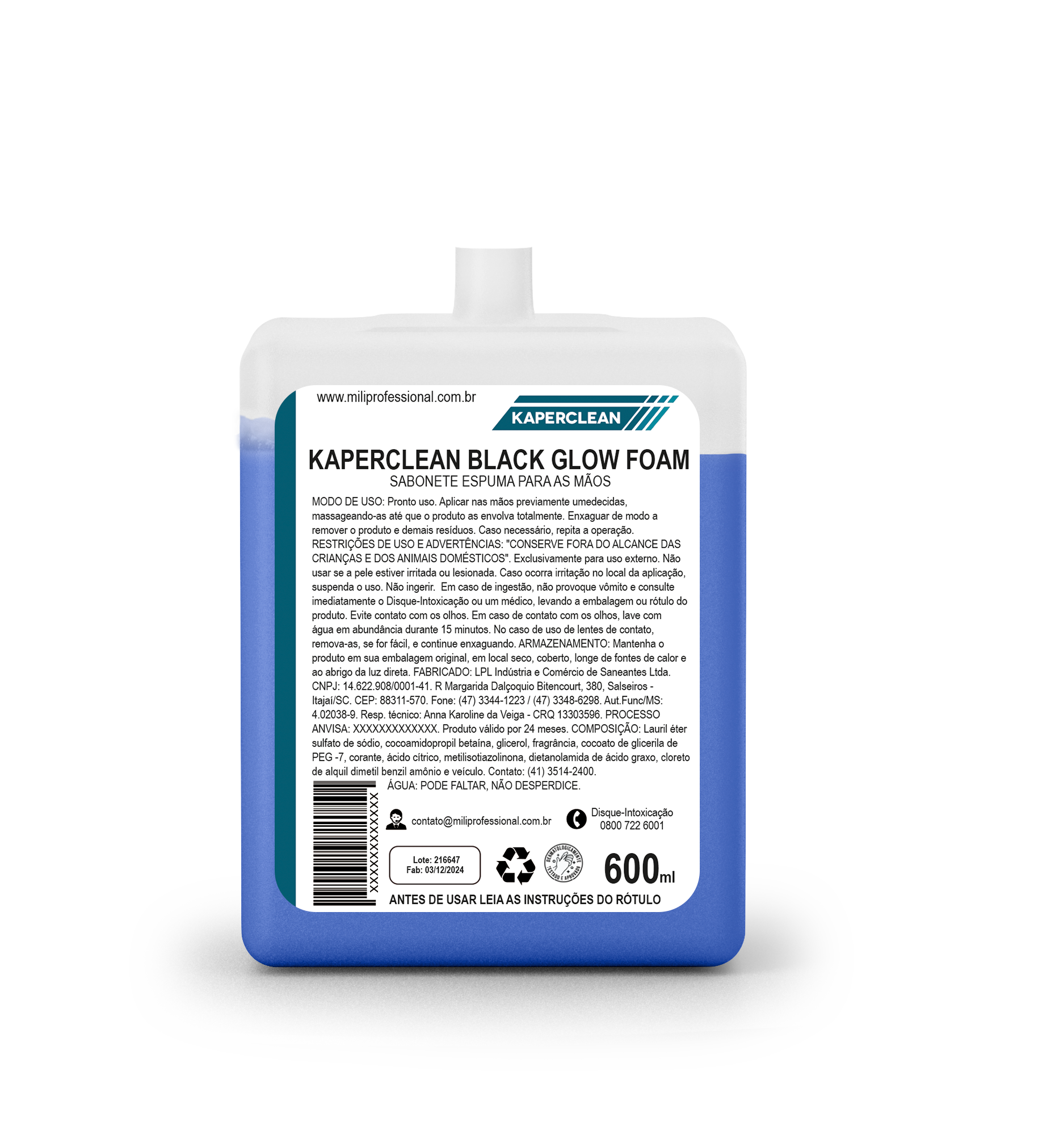 · Sabonete líquido perolado e espuma suave.